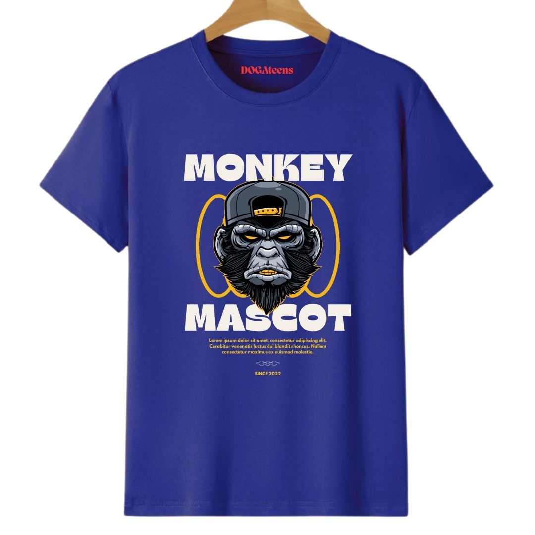 Monkey Mascot-Regular Fit, T-Shirt, Royal Blue, Cotton, 180 GSM, Pure Cotton, True Bio Wash Brand DOGAteens