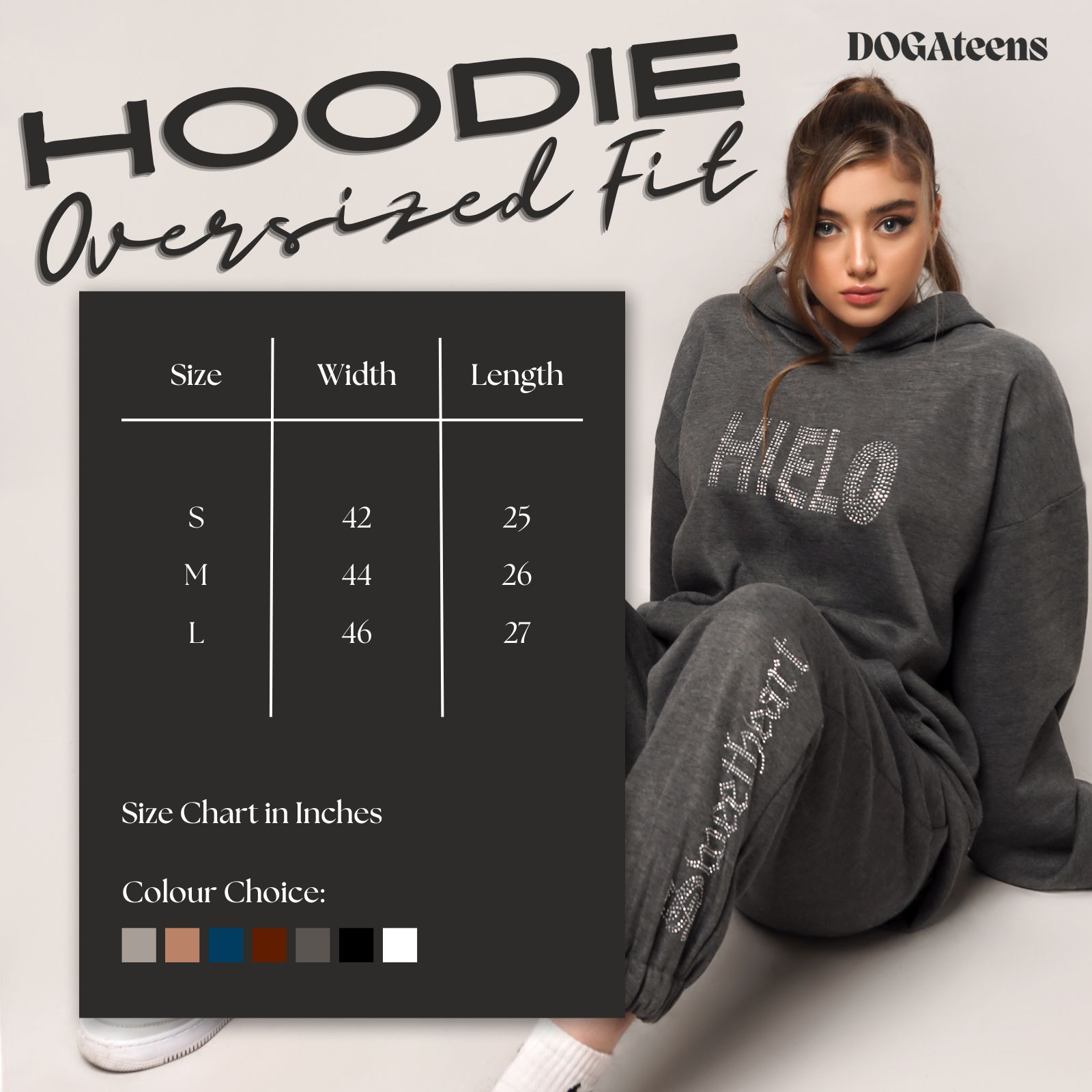 Women’s Wear, Oversized Fit Hooded Sweatshirt, 450 GSM, 88% Cotton + 12% Polyester, cotton fleece-Brand DOGAteens