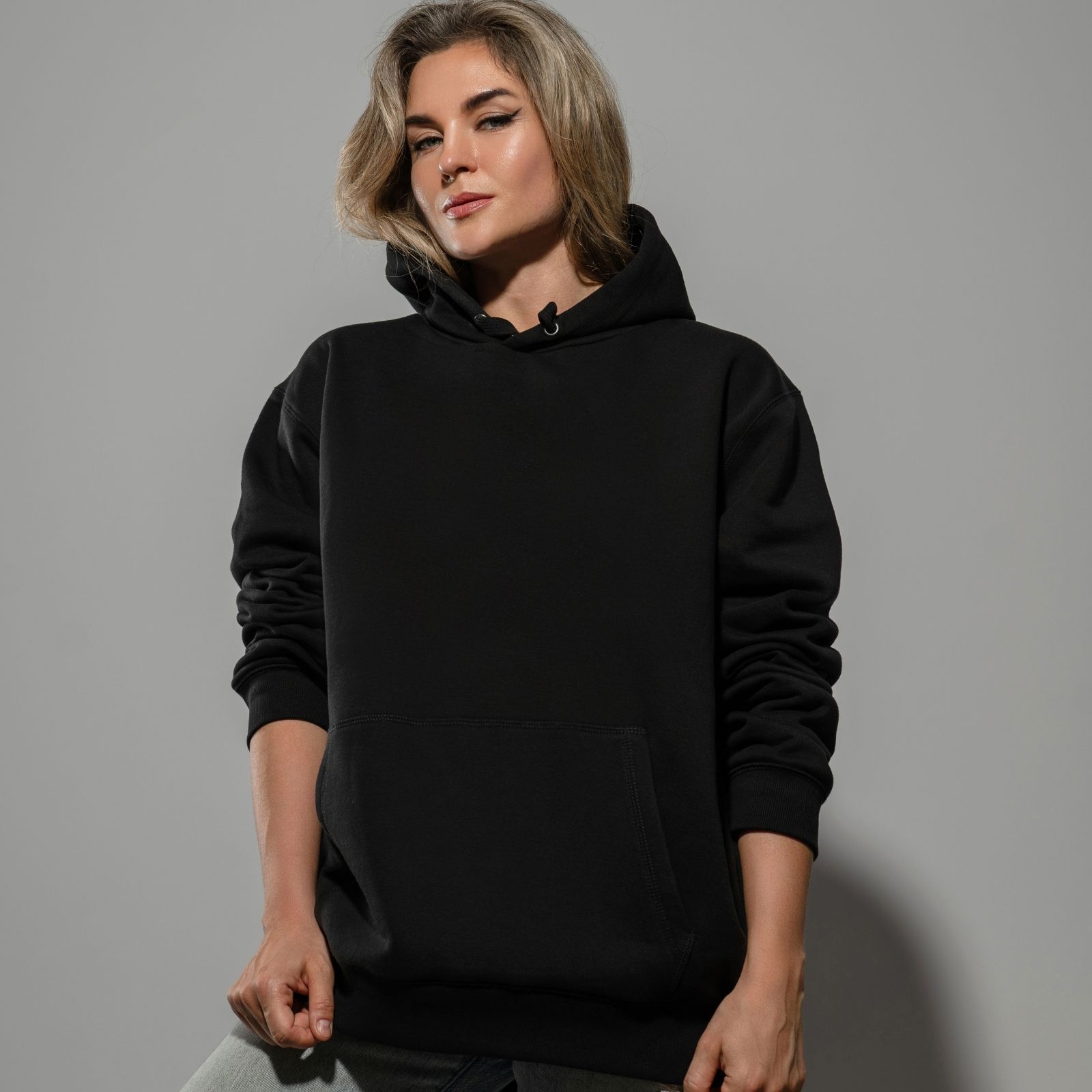 Oversized Fit, Women Hooded Sweatshirt, Black, 450 GSM.