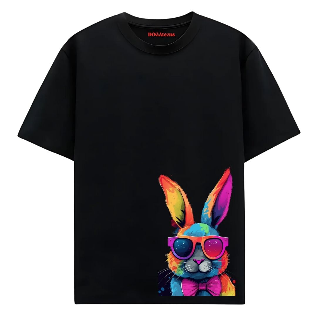 Rabbit, Oversize T-Shirt, Black, Cotton