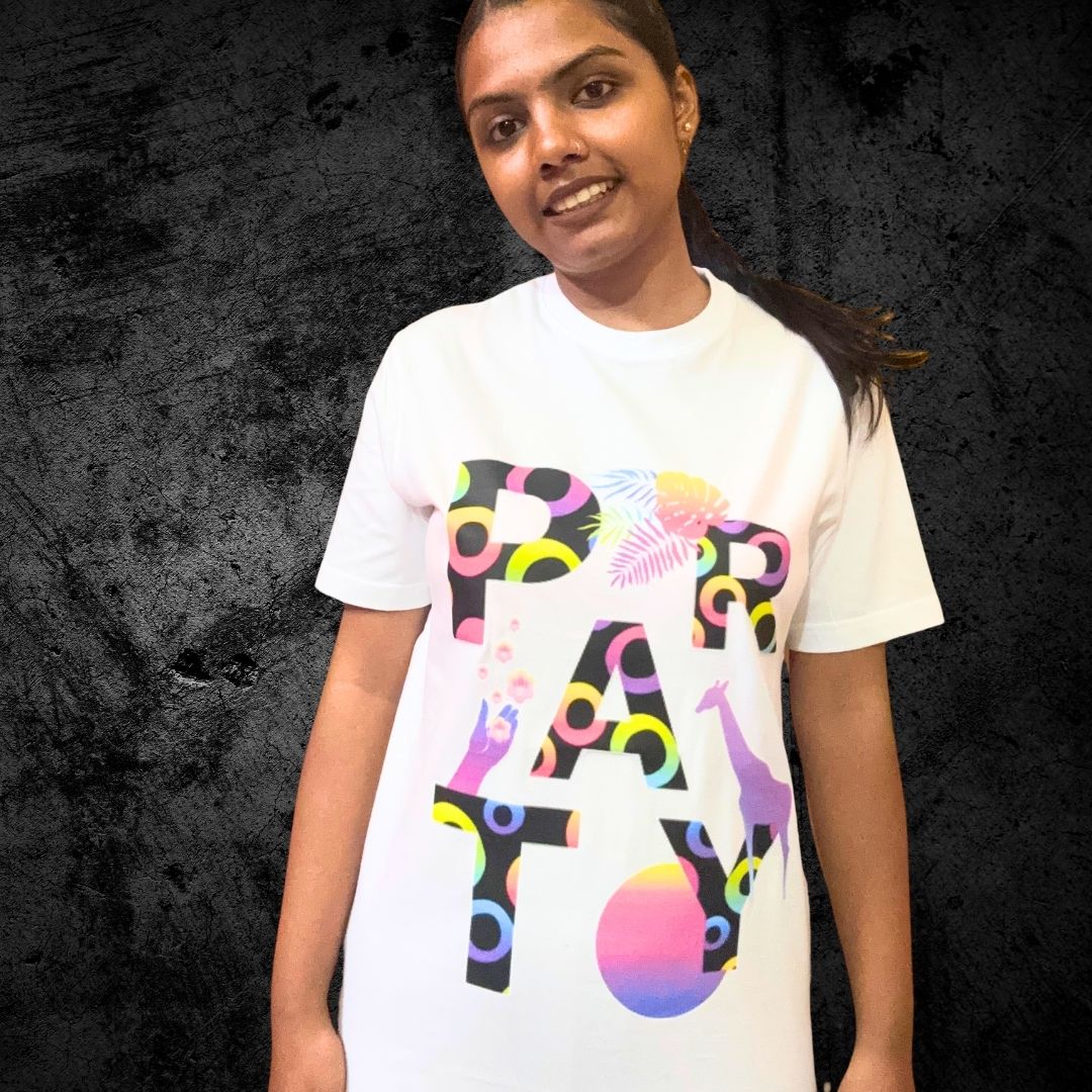 Regular Fit Women T-Shirt, White, Colorful PARTY Printed